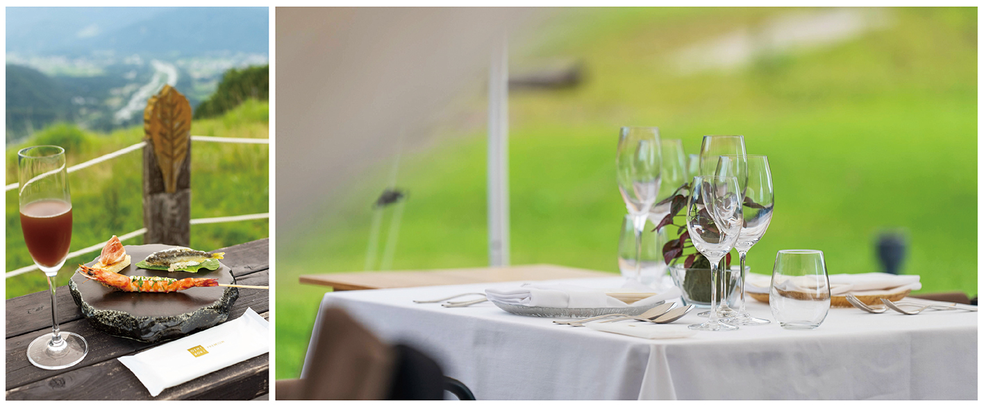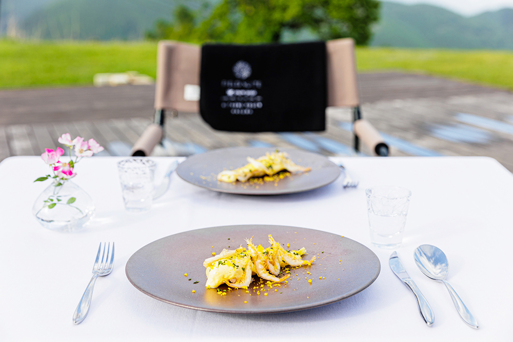 FIELD SUITE HAKUBA has long offered course meals featuring Nagano-grown ingredients paired with Nagano wines. This season, in addition to this popular pairing course, Chef Suzuki will introduce a new course showcasing the delicate Italian ingredients and wine pairings cultivated during his six years of training in Italy. Sommelier Sho Yoshihira will handle the pairings for both courses.